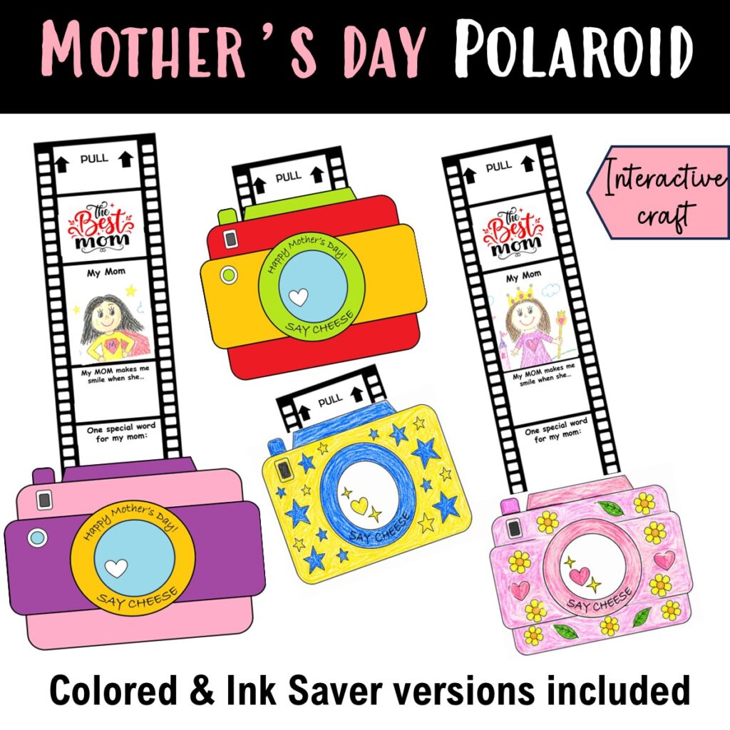 Make Mother’s Day extra special with this adorable Polaroid Camera Writing Craft! This fun and interactive activity lets kids create a personalized keepsake by drawing their mom’s portrait and writing heartfelt messages on a pull-out photo reel. Perfect for preschool, kindergarten, and early elementary students, this Mother’s Day craft combines creativity, fine motor skills, and meaningful writing prompts. Check out this TUTOTRIAL VIDEO for Polaroid craft!